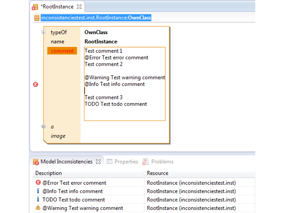 - #6600 Support annotations (@Error, @Warning, @Info and TODO) inside AnnotableComment.comment